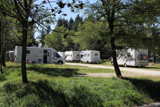 Vous disposez ici d’une vingtaine d’emplacements sur sol ferme, certains étant matérialisés, séparés par des bandes engazonnées et en partie ombragés. Une trentaine de véhicules peuvent y cohabiter en cas de forte affluence. Pour les perfectionnistes, des cales sont utiles pour assurer l’horizontalité du véhicule. Le site bénéficie d’un éclairage nocturne. Le stationnement est gratuit.