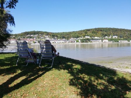 La situation est calme et le paysage est animé par le trafic des bateaux qui descendent ou remontent le fleuve jusqu'à Rouen.