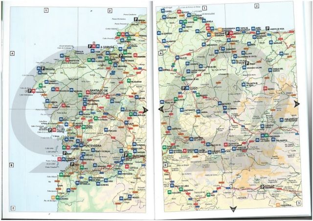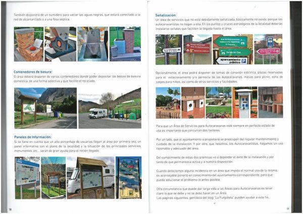 Par ailleurs, chaque fiche est accompagnée de photos montrant les lieux, suivies de pictogrammes indiquant les différents services disponibles sur place et précisant la gratuité ou non de l'installation. Un atlas de fin regroupe toutes les aires espagnoles sur plusieurs cartes routières.