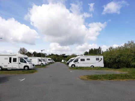 Dans le détail, elle possède 62 places de stationnement toutes sur sol stabilisé. Les places sont matérialisées au sol et délimitées parfois par des bandes herbeuses pour un esprit plus nature et moins parking. Le stationnement est payant, mais sans pour autant avoir de barrière à l'entrée. Une borne de paiement est à disposition à l'entrée de l'aire, pour s'acquitter par carte bancaire d'un forfait pour 24 heures de 9 €, en période estivale (7,50 € en septembre, et 5 € d'octobre à mars).