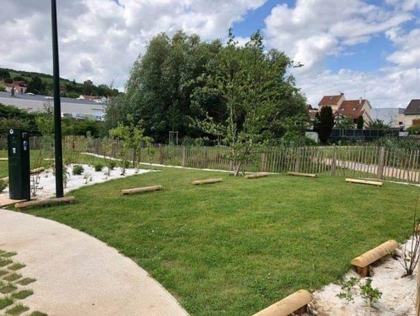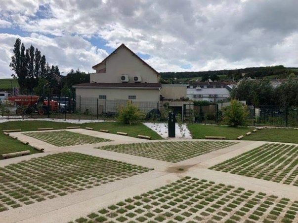 Plusieurs arbres plantés au moment de travaux apporteront de l’ombre dans quelques années durant les journées ensoleillées. Les emplacements sont matérialisés par des pavés et des surfaces engazonnées.