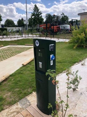 Chaque place est équipée d’une borne de branchement électrique et de distribution d’eau. Par ailleurs, une connexion Wi-Fi est disponible gratuitement. Il est possible de vidanger les cassettes des WC, mais pas celle des eaux grises. Pour réaliser cette opération, les usagers doivent se rendre à la borne de services allée de Cumières.
