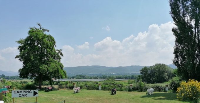 Il y a la possibilité de faire des randonnées dans la campagne environnante ainsi que des promenades à vélo et la piscine municipale se trouve à 500 m. Le soir, nous avons pu déguster une excellente pizza maison. Le matin, nous avons eu la surprise de trouver le pain et les croissants que nous avions commandés la veille, déposés dans une boîte située sur l’emplacement. Seule la pluie nous a empêchés de profiter de la table et des chaises mises à disposition.