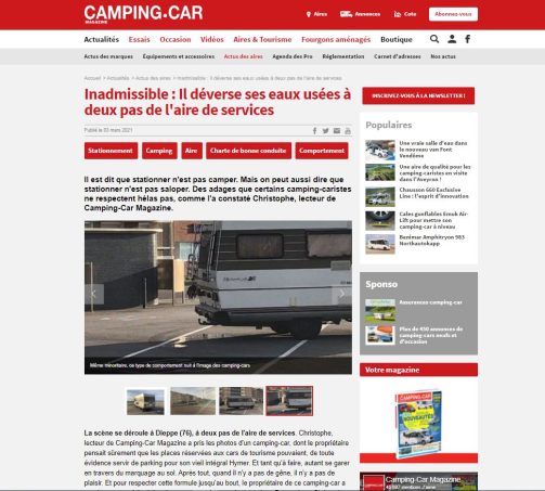 Dans un article publié ici même le 3 mars dernier, nous apportions le témoignage d'un camping-cariste qui, photos à l'appui, dénonçait une vidange sauvage réalisée sur le port de Dieppe, à deux pas de l'aire de services.