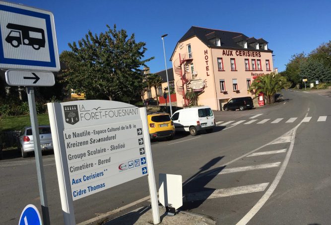 • A la Forêt-Fouesnant, les camping-car doivent stationner sur les parkings autorisés sur un parking du bourg, sans trop d’intérêt.