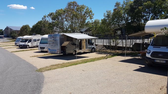 Lorsque l’aire est complète, un grand parking situé à proximité permet également d’accueillir des véhicules.