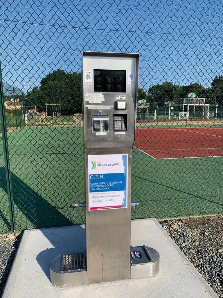 - Services (paiement par CB) : vidanges, eau (2 €), électricité (3 €) et toilettes publiques.
