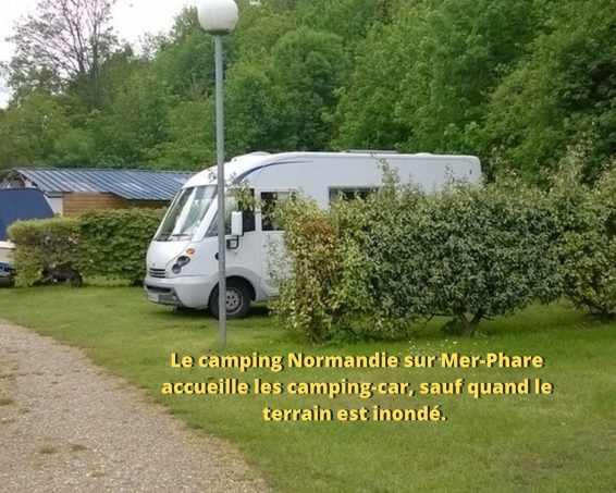 Nous sommes arrivés au camping Normandie sur Mer-Phare 2* (Honfleur) pour y passer une ou plusieurs nuits... A notre arrivée, plusieurs camping-cars manœuvraient pour reprendre la route. Des panneaux “Interdiction aux camping-cars”, “Terrains inondés” et camping “Complet” étaient placardés sur des barrières qui en bloquaient l’accès.