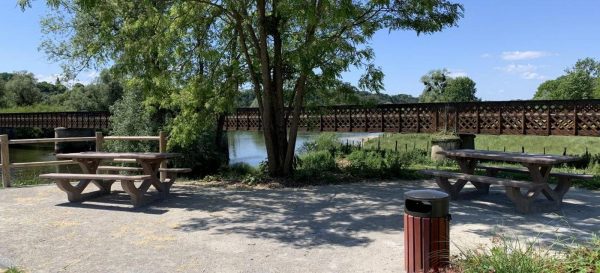 Il y a aussi des parcours carpes de nuit alors qu’il est aussi possible de pêcher dans le canal, pas très loin. Cinq véhicules peuvent stationner sur cette aire sans service. A noter que deux tables de pique-nique sont présentes sur l’aire et la boulangerie du bourg permet d’aller acheter baguette et viennoiseries le matin.