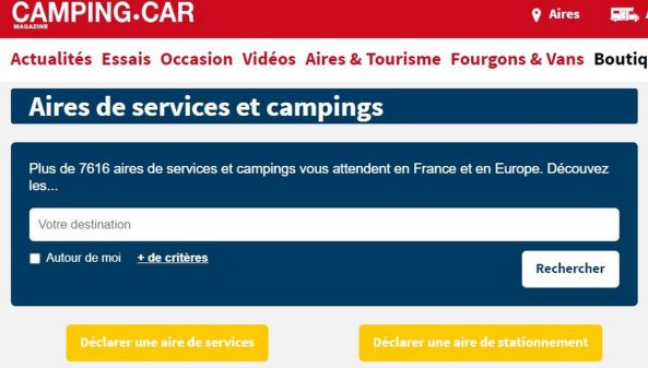 Sur cette plateforme, vous trouverez près de 7161 aires de services et campings, partout en France et en Europe. Vous n’avez qu’à entrer votre destination et sélectionner des critères en fonction du type d’aires, des services disponibles et de la situation, en fonction de vos besoins. Disponible à la fois via un ordinateur et tablette, mais aussi sur votre smartphone depuis notre site internet camping-car.com