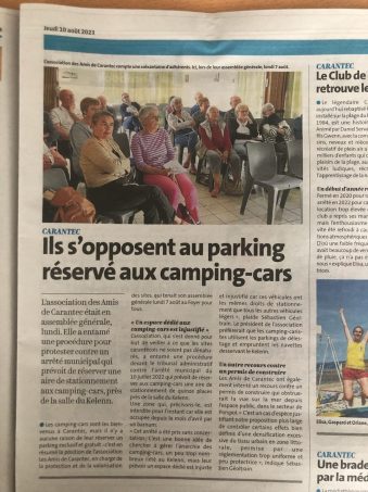 Dans le nord Finistère justement, l’association des Amis de Carantec s’est élevée, au cours de son assemblée générale qui s’est tenue le 7 août 2023, contre l’arrêté municipal qui prévoit de réserver un parking pour le stationnement des camping-cars.