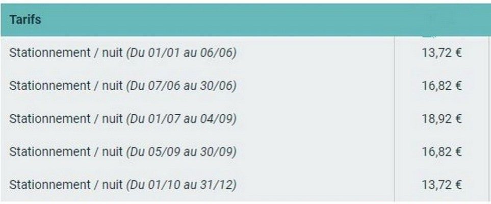 L'accès s'effectue par une barrière après avoir préalablement renseigné sa plaque d'immatriculation et retirer le ticket (qu'il faut conserver précieusement pour pouvoir ressortir). Les prix sont en haute saison de 18,92 € par tranche de 24h. Aucune limite de temps n'est fixée, mais le bon sens est de rigueur en fonction des fortes affluences qu'il peut y avoir en juillet et août.