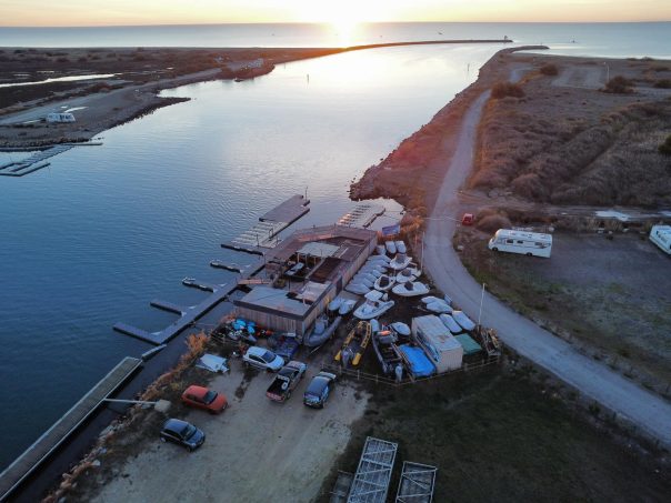 L'accès par Vendres puis par la rive de l'Aude côté de La Chicotière (j'ai découvert le nom à cette occasion) ou plus simplement côté Nord de l'Aude n'est désormais plus possible en tous cas pour les véhicules de plus de 2,60m de hauteur car une barre de limite de hauteur est placée sur l'unique pont qui enjambe l'Aude 2 km avant Les Cabanes de Fleury. Il faut passer par Vendres puis Lespignan, un bon détour.