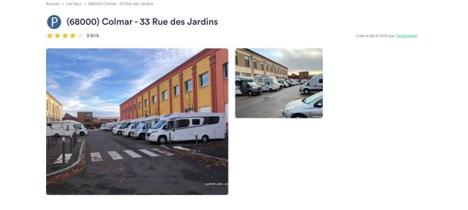 Chez Park4night, par exemple, le parking du 33 rue des Jardins, situés devant les locaux du Pôle de formation du Grillenbreit, est très bien noté (3,91/5) et illustré de photos sur lesquelles apparaissent des camping-cars alignés en rang d’oignon durant la journée.