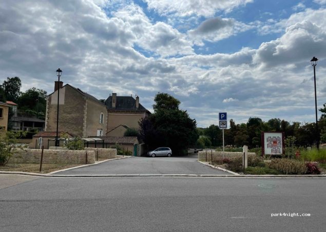 Très calme la nuit. La borne n'est pas du tout artisanale, elle est très bien conçue ainsi que la plateforme de vidange des eaux grises. Attention l'hiver l'eau est coupée. Faite par le club camping-cariste des Deux-Sèvres. Juste à côté, il y a des toilettes publiques à nettoyage automatique. État très propre. Dans le bourg, tout ce qu'il faut pour s'approvisionner et de bons restaurants à prix contenus. Au niveau visite : une magnifique abbatiale, un château et une source souterraine qui se visite. Pour l'abbatiale compter au moins 3 h tant les chapiteaux sont richement décorés. Un ouvrage à l'entrée vous donne les explications pour chacun d'eux.