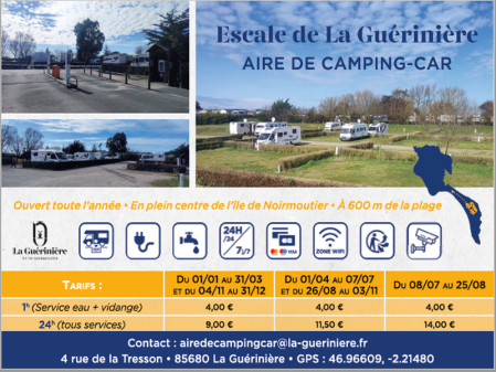 Infos : 02.51.39.80.32 (mairie), airedecampingcar@la-gueriniere.fr