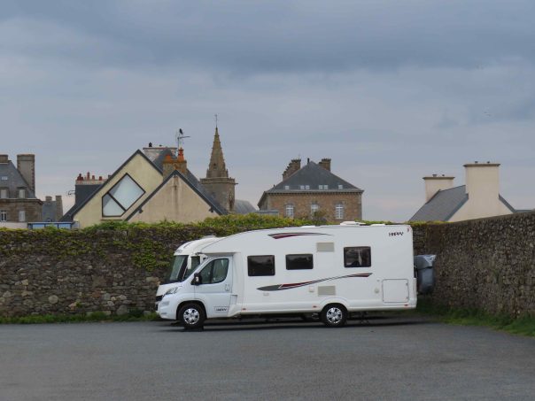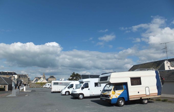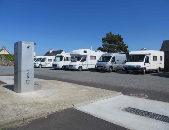 L’aire se trouve perchée sur la presqu’île rocheuse entre le phare et les remparts historiques de la Vieille Ville, à proximité du gymnase Jean Galfione, des anciens bunkers de la seconde guerre mondiale, des aquariums et coquillages du Roc des Harmonies. Ouverte toute l’année, elle compte entre 15 et 20 places, suivant la taille du véhicule, sur un sol stable légèrement gravillonné. Dans un environnement sobre bordé de maisons calmes, une borne de services avec paiement par carte bancaire délivre eau et électricité, à côté de la zone de vidange. Grâce à son emplacement idéal sur cette presqu’île, il vous suffit de faire quelques pas pour admirer la baie et les ports côté sud jusqu’à la pointe de Carolles, mais aussi côté nord la mer et l’archipel de Chausey avec d’imprenables couchers de soleil.