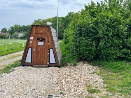 Une petite cabane sanitaire a été ajouté sur le site, pour une qualité de services encore plus accru ! Photo : Valentin Roussel