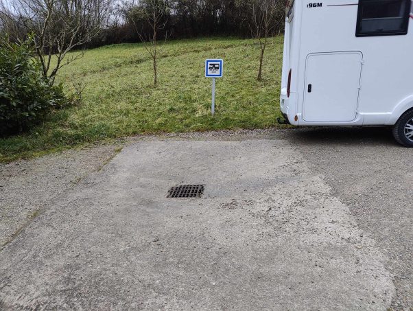 Elle compte 10 emplacements et reste ouverte toute l’année. Ce parking, réservé aux camping-cars, est une vaste étendue en gravillon entourée d’arbres. Les utilisateurs y retrouveront les services nécessaires pour vidanger les eaux usées et les eaux noires, faire le plein des eaux claires et d’électricité… Notons que quatre branchements électriques ont disponibles et que plusieurs poubelles sont disposées à l’entrée du parking. Le stationnement est facturé à 6 € pour la journée et à 12 € pour la nuit.