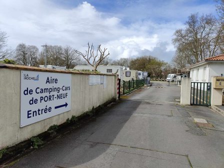 Une grande aire de services accueille toute l’année des camping-cars dans le quartier de Port-Neuf à l’ouest du centre de La Rochelle, en Charente-Maritime. Située à moins de 2,7 km du Vieux-Port, elle offre une capacité conséquente, avec 171 emplacements. Parmi eux, 20 sont réservés aux véhicules de grande taille.