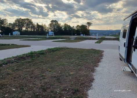Durant la phase de travaux, une nouvelle borne de services a notamment été installée, aussi bien pour effectuer les opérations de vidanges que pour faire le plein d'eau potable. Alors que plusieurs bornes électriques sont également présentes sur l'aire, dans le but de se raccorder au réseau électrique. La capacité d'accueil n'a pour sa part pas évolué, en permettant, au total, à 45 véhicules de stationner sur des emplacements au sol naturel et parfaitement stable.