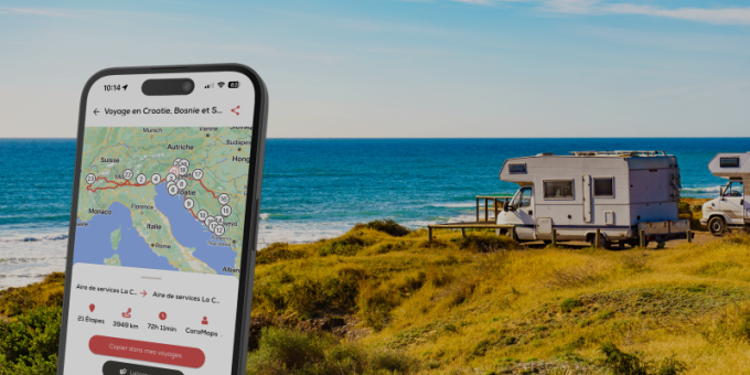 “Avant, j’avais une appli pour les aires de service, une autre pour les visites touristiques, je passais par Waze pour le GPS et je faisais mes itinéraires à part… Depuis que j’utilise CaraMaps, j’ai tout au même endroit. C’est beaucoup plus simple et ça me laisse plus de temps pour profiter du voyage et le GPS avec gabarit c’est rassurant.” - Michel, camping-cariste depuis 2018