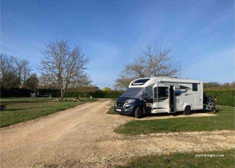 Mais où fait-elle la différence ? Sur ses treize emplacements prenant place sur un sol parfaitement stabilisé, et qui sont du genre spacieux. Sur ses services, où tout est complet et fonctionnel, de la zone de vidange à l'électricité, en passant par la recharge en eau potable et même la présence de machine à laver dans un petit cabanon, sur l'aire. Mais aussi sur des petites choses en plus, comme la possibilité d'utiliser, au sein même de l'aire, des tables de pique-niques, un terrain de pétanque et, chose également agréable, un barbecue. image