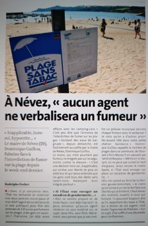 Le Télégramme ce matin, relatait les états d'âme du premier élu de la commune de Névez... à propos de la cigarette... de la cendre... et du mégot !