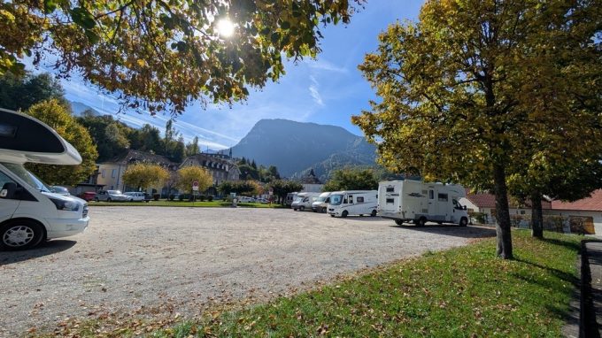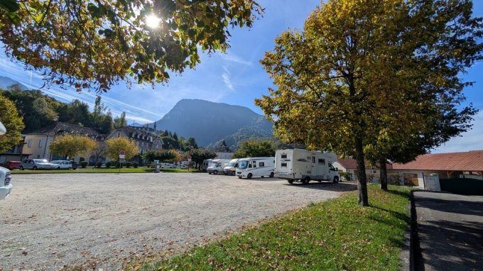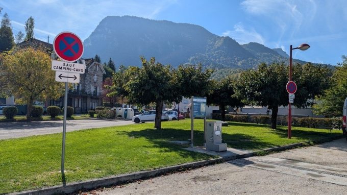 Pour notre plus grand plaisir, la mairie semble donc avoir fait machine arrière pour proposer une zone dédiée et pouvant accueillir aisément une dizaine de véhicules sur un sol en gravier totalement plat. Outre la vue superbe sur le massif de la Chartreuse, on louera la proximité immédiate avec les commerces du centre-ville.