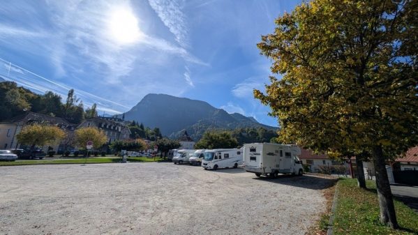 Outre la vue superbe sur le massif de la Chartreuse, on louera la proximité immédiate avec les commerces du centre-ville. Une borne de services est à disposition sur site avec une grille d’évacuation. Elle fonctionne sous forme de jetons qui sont à récupérer à la mairie en période de basse saison, et auprès du camping à proximité en haute saison.