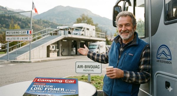 Nous sommes allés à la rencontre du concepteur de l’Air-Bivouac. Notre homme s’appelle Loïc Fisher. C’est un camping-cariste de longue date. Fort de son expérience et souvent contrarié de ne pouvoir trouver de places pour bivouaquer, lui est venue l'idée de créer des aires de services à étage. Il cherche aujourd’hui des partenaires pour concrétiser son projet.