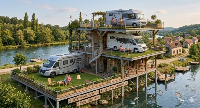 - L.F. : Je suis actuellement en pleine prospection. Je cherche avant des sites proches des plans d’eau pour que les camping-caristes qui stationneront sur mes Air-Bivouac puissent sortir leurs cannes à pêche et lancer leurs hameçons directement à partir de la plateforme sur laquelle ils stationnent.