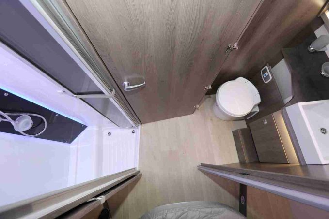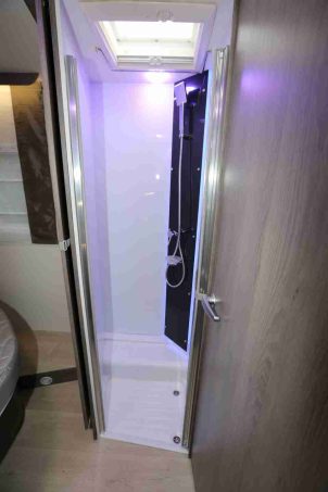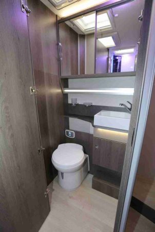 S’inspirant du best-seller 288 EB, ce modèle prend de l’embonpoint et gagne 20 cm de longueur (passant donc de 6,99 m à 7,19 m). 20 cm de bonheur que la marque met à profit pour loger à bord une salle d’eau en deux parties mais pouvant donc être réunie en une seule. Une opération possible grâce à l'intégration désormais d'une cloison coulissante, isolant également l’espace nuit du poste sanitaire.