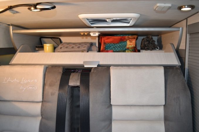 Dans sa configuration de base, L'Auto Loisirs 4 propose deux assises en cabine et une banquette biplace à l'arrière. Il est livré avec un petit toit relevable conçu par MCC (photo ci-contre). Fermé, celui-ci reste assez discret. Ouvert, il libère un surprenant volume intérieur pour se sentir plus à l'aise à bord.