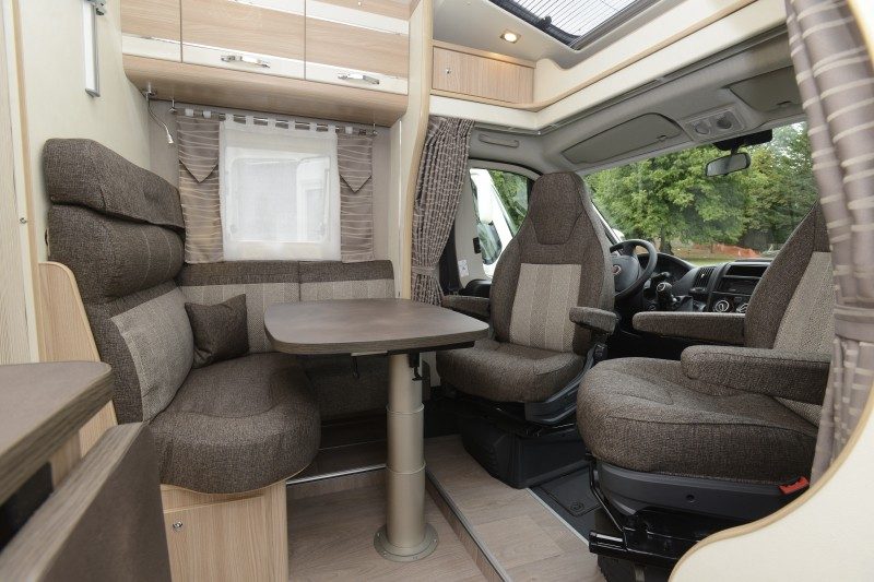 Concernant la collection d’intégraux Wincester, le nouveau 75 LMF suit la tendance à la mode avec un salon à deux banquettes transversales en vis-à-vis. A l’arrière, il conserve un classique lit central.