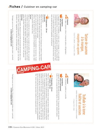 Alors n’hésitez pas à nous faire partager vos meilleures recettes spéciales camping-car. Celles qui seront sélectionnées par la rédaction seront publiées dans les pages de Camping-Car Magazine.