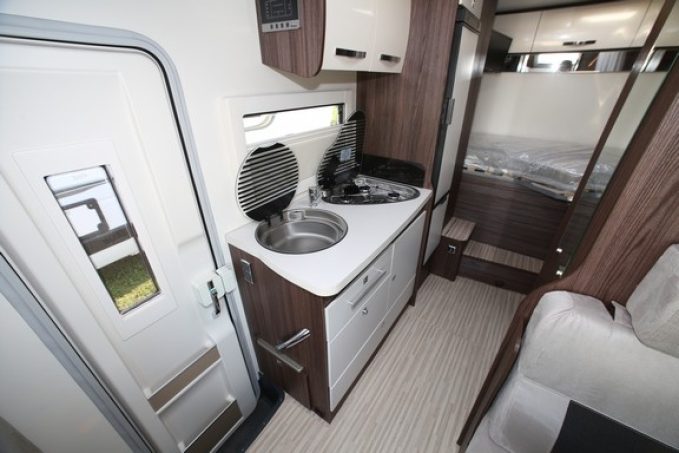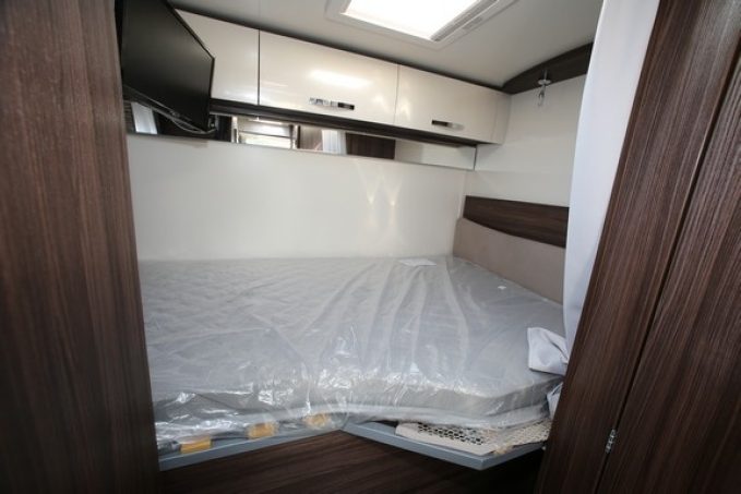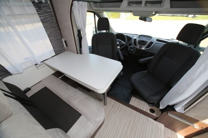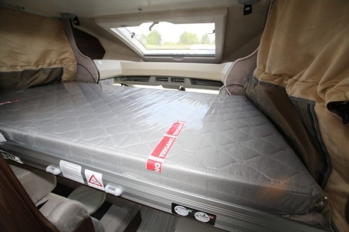 Si l’agencement de ce camping-car se veut relativement conventionnel et sans fausse note, avec un grand lit transversal sur soute (couchage réglable en hauteur), Benimar a souhaité s’adresser à une clientèle primo-accédante qui ne connaît pas grand-chose au camping-car mais qui, avec ce modèle, dispose de tout le nécessaire pour pratiquer dans de bonnes conditions.