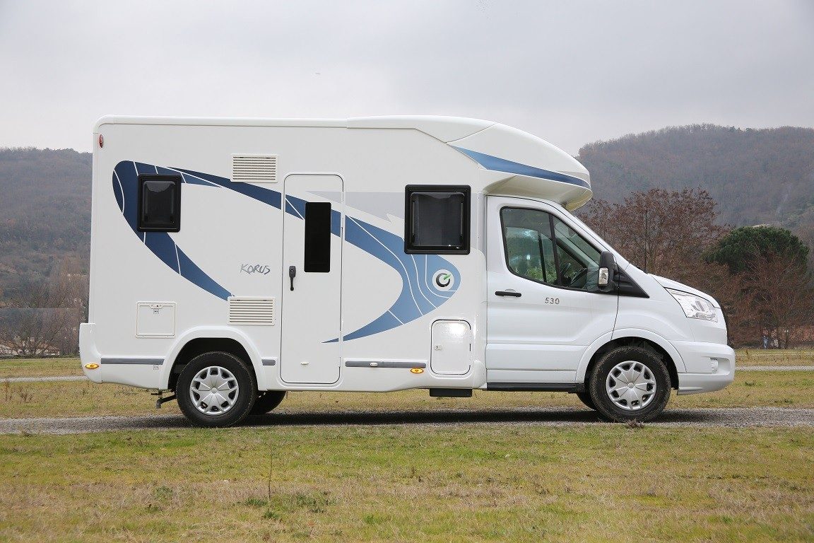 Dans cette série limitée Korus, dont les caractéristiques sont communes avec la gamme Quartz de Challenger, on retrouve une star incontournable du catalogue, le 628 EB (6,99 m à lit central), mais aussi un ultracompact avec le 530 (5,99 m, maxi living avant, maxi salle d’eau arrière) ici en photos, ou encore un agencement totalement nouveau pour Chausson avec le 638 EB (6,49 m, doté d’un vrai lit central).