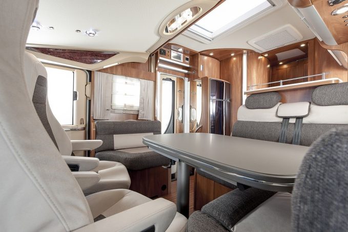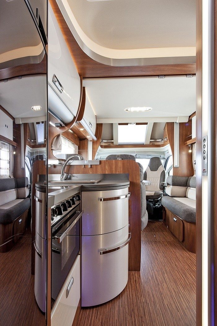 Enfin, pour le mobilier, Laïka joue sur les contrastes en mariant le blanc nacré et le merisier. Si les prix n’ont pas encore été annoncés, on peut vraisemblablement s’attendre à des tarifs flirtant avec les 78 000 € pour le profilé et 88 000 € pour l’intégral.