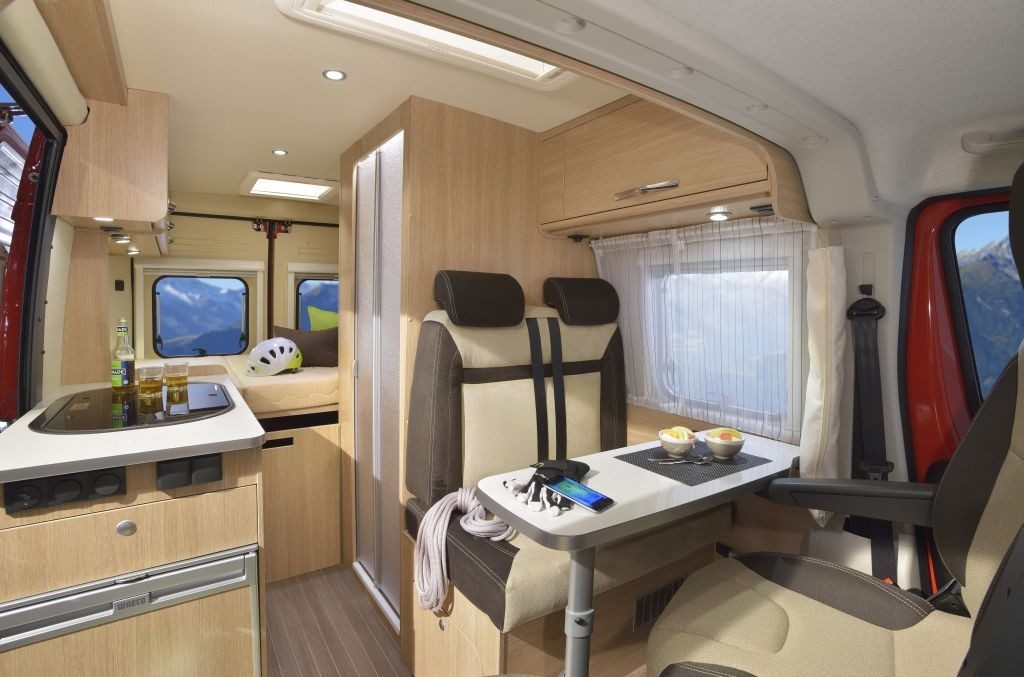 La chambre a droit à un lit transversal sur soute pour les 540 et 600, ou des lits jumeaux pour le 640. En option, de quoi optimiser le niveau d’équipement avec le pack ''Confort'' (lanterneau au-dessus du lit, rideaux de douche et occultant la cabine, marchepied électrique) et le pack ''Châssis'' (clim manuelle, rétros électriques, airbag et siège réglable en hauteur côté passager, tissu des sièges avant assorti à celui de la banquette).