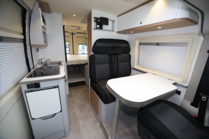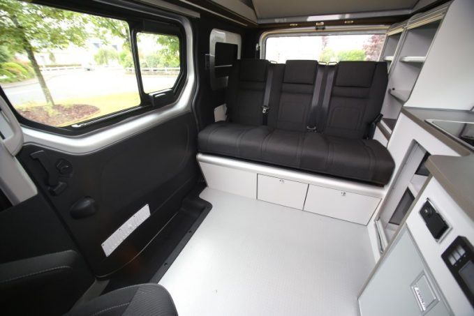 Les Trek, proposés avec une banquette arrière à deux ou trois places et sur deux longueurs de châssis (4,90 m ou 5,30 m), sont commercialisés soit avec un petit toit relevable permettant de se tenir debout soit avec un grand toit hébergeant un grand lit double. Comptez à partir de 39.920 € (Trek-42 avec petit toit). Le Trek-43 (en photo), disposant d'un grand toit relevable et homologué cinq places carte grise avec sa banquette à trois assises, est proposé à 44.450 €.