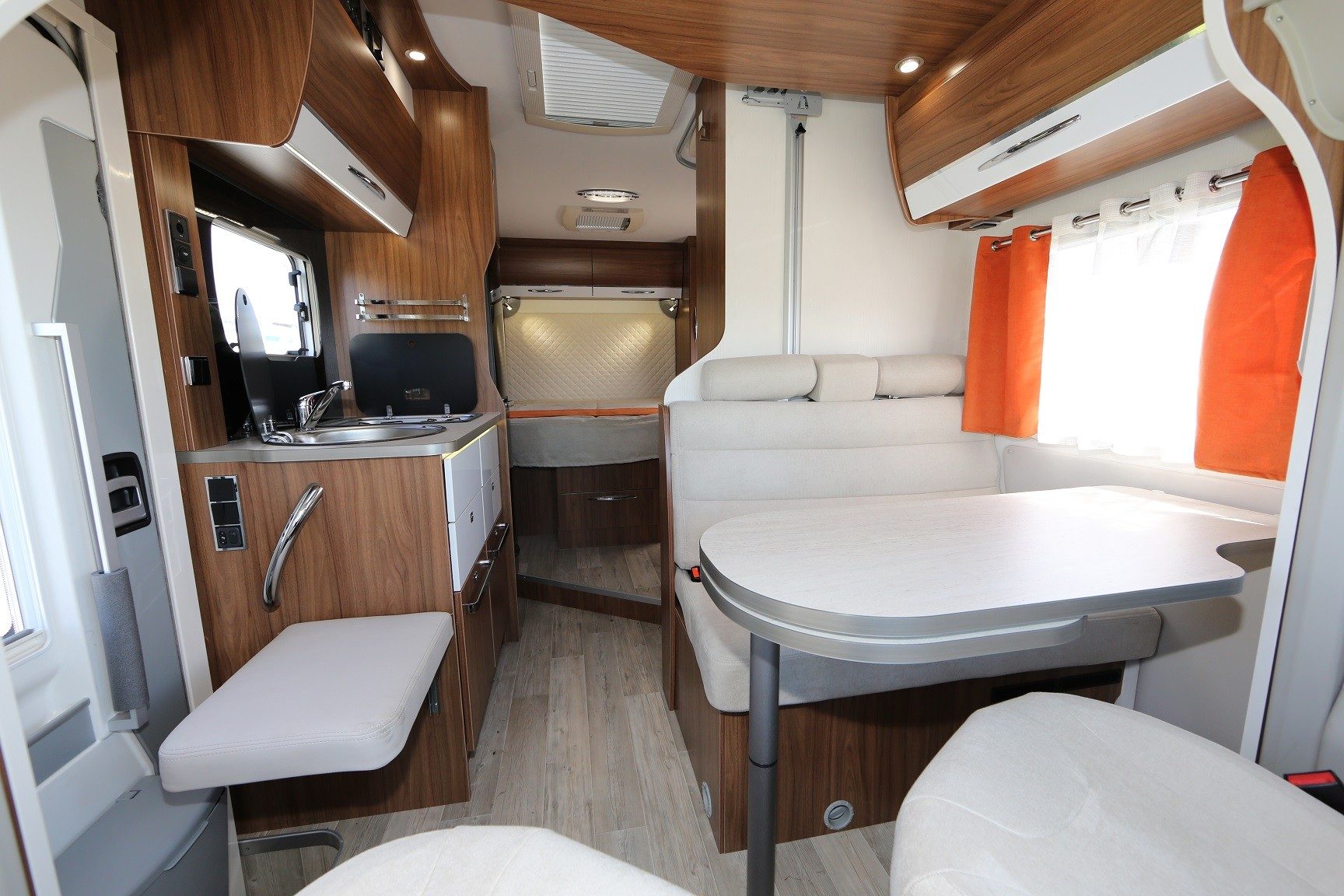 Mais ce qui va impacter le plus le catalogue 2016, c’est l’apparition de nouveaux compacts, aussi bien dans la catégorie des profilés que dans celle des intégraux. Pilote avait marqué les séries de printemps en lançant le P 650 C, un profilé de 6,49 m avec lit central. Dans la lignée de celui-ci, nous voyons notamment arriver le P 656 C (dès 49 900 €, en 130 ch avec clim cabine de série). Il se distingue du P 650 C par l’ajout d’un lit de pavillon pour une personne. Et comme pour tous les autres profilés à lit de pavillon, c’est nouveau, celui du P 656 C est actionné par un moteur électrique.