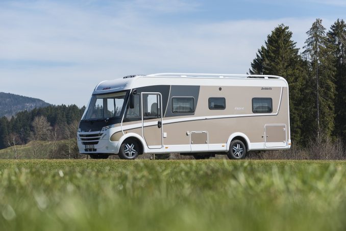 Notez donc que l’offre Esprit se concentre désormais sur un seul niveau de prestations où le châssis Al-Ko rabaissé, le double plancher technique chauffé et la conception IsoProtectPlus sont communs à tous les modèles, profilés comme intégraux. Le positionnement est chic et technique avec, notamment, l’adoption d’une porte d’entrée extra large avec baie, des jantes 16 pouces et de feux à leds de série, ou encore le passage à une hauteur intérieure peu commune de 2,03 m (contre 1,98 m auparavant).