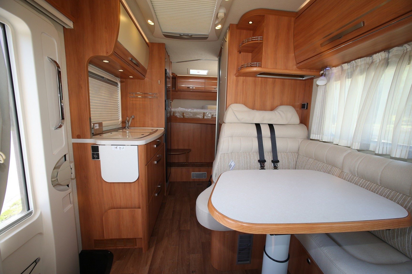Sur porteur Mercedes Sprinter le nouveau compact (6,36 m) est notamment pourvu du dispositif « Crosswind Assist » agissant en cas de vent latéral prononcé. A bord, cet inédit 540 à lit transversal sur garage se révèle assez conventionnel du point de vue de l’implantation. La bonne surprise réside dans la réalisation du garage, accessible par deux grands portillons, dont le volume proprement édifiant conjugue de nombreuses solutions de rangements avec un blindage du sol et la présence d’une douchette. Et le volume est paré pour le chargement d’objets lourds autorisés par les 618 kg charge utile du modèle.
