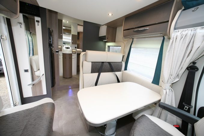 Le 728 EB, ici en photo, est le grand de la série : 7,46 m puisqu’il dispose d’un lit central et d’une salle d’eau transversale. Un vrai best-seller pour la marque française.