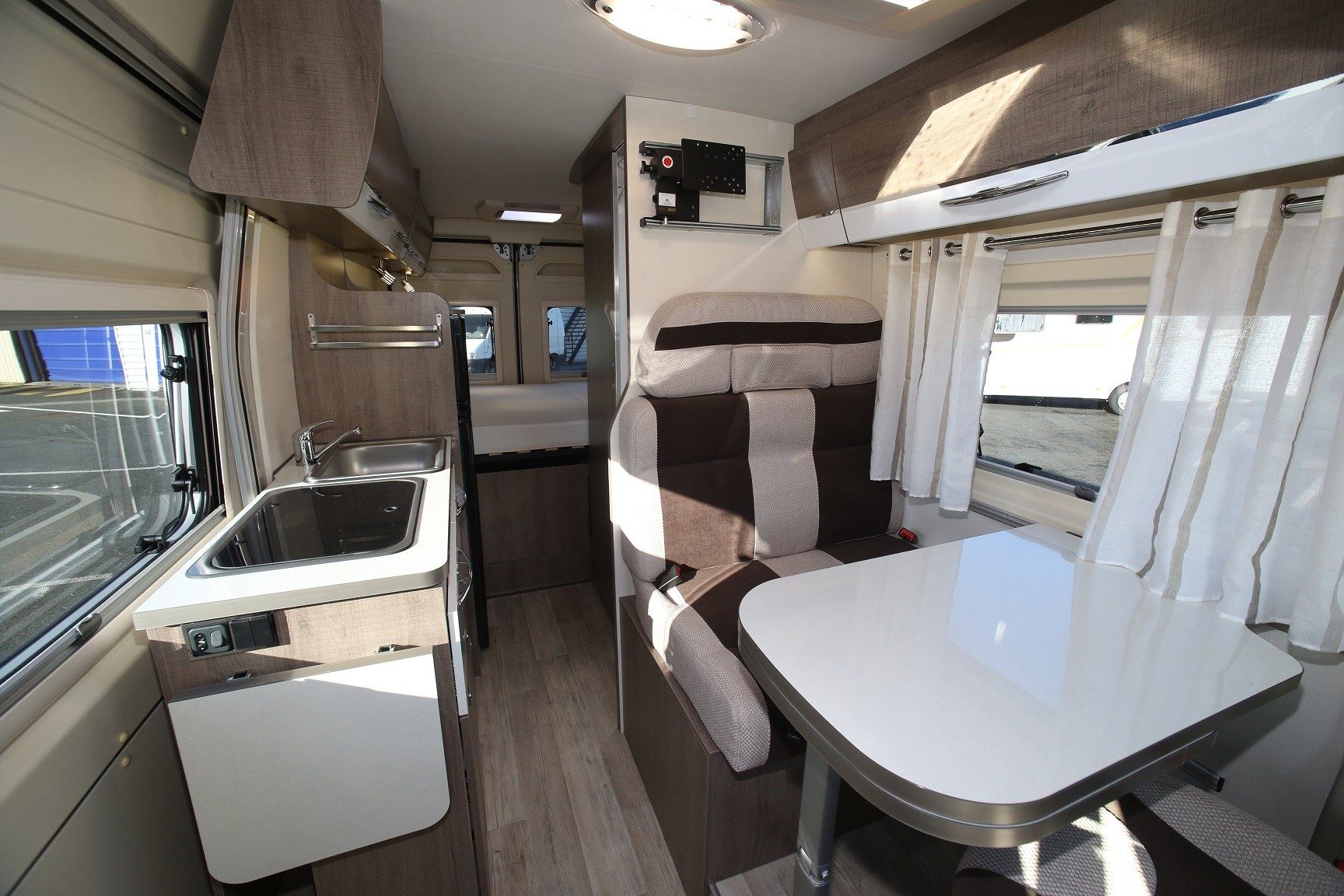 Le nouveau fourgon aménagé de Bavaria, le Van 600 F, se distingue avec son réfrigérateur de 141 litres et sa généreuse réserve d’eau propre (110 litres).