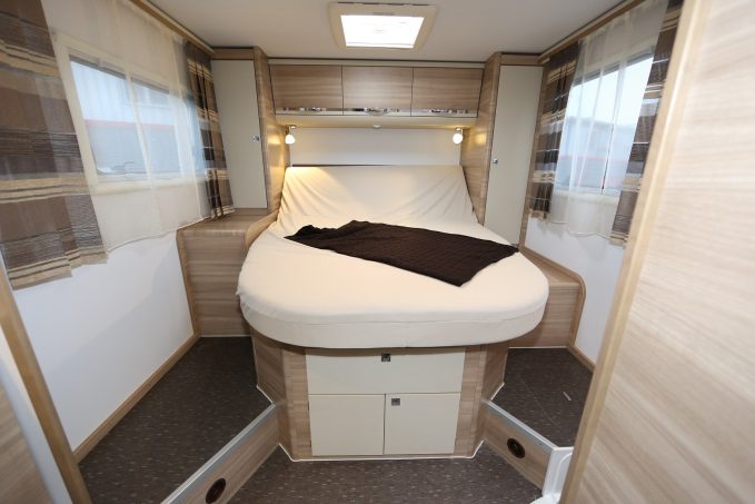 A l’intérieur, d’autres singularités : tissus, revêtement de table et de plan de travail sont exclusifs à la série. Mix des Matrix, le mobilier bois clair est celui de la version « Axess » mais les prestations s’apparentent au niveau supérieur « Plus ». Tous deux sous les 59 000 €, les 670 SC et SBC 50e Anniversaire sont bien équipés de série : bloc 2.3 de 130 ch, clim cabine, régulateur de vitesse, suspension pneumatique, lit de pavillon électrique, four à gaz, réservoir d’eaux usées isolé et chauffé…