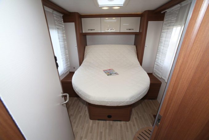 Les qualités du RoTEC Lift-S H 607 ne s'arrêtent pas là. La présentation intérieure est flatteuse et l’aménagement bien pensé. C'est à peine si l'on devine la présence d'un lit de pavillon (198 x 140 cm). Autre souci du détail, le sommier du lit central (187 x 140 cm) peut coulisser d'une dizaine de centimètres vers l'arrière en relevant la tête de ce dernier afin d'améliorer la circulation dans la chambre.