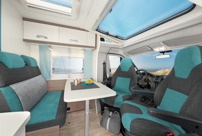Dans cette version inédite Trend ST, les banquettes et sièges de cabine sont habillés de housses bitons mélangeant le gris et le vert pistache pour l’ambiance Lia, ou le gris et le bleu turquoise pour l’ambiance Fjord. A noter que ces deux intérieurs originaux sont associés à un nouveau mobilier aux lignes contemporaines, à dominante blanche.