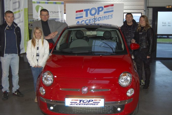 La remise des clefs de la Fiat 500 rouge, premier prix du concours, a eu lieu à la concession Lestringuez de Beauvois en Cambresis (59). Monsieur et Madame Thorel, accompagnés de leurs deux enfants, se sont vus remettre leur lot en présence de Nicolas et Philippe Lestringuez. Une belle récompense pour cette famille du nord pratiquant le camping-car depuis dix ans.
